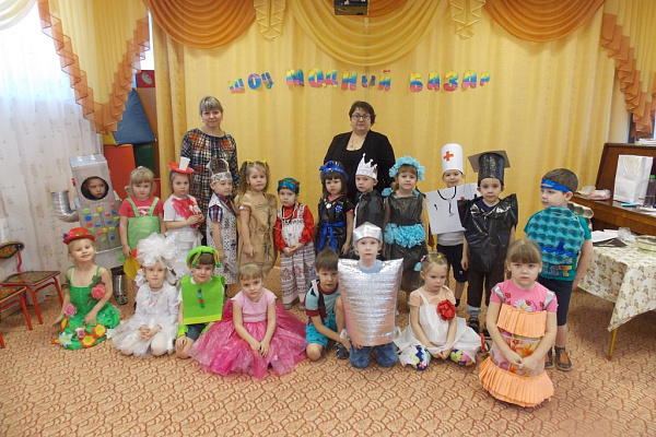 Дети средней группы «Пчёлки» в силу своего возраста еще не могут изобрести что-либо самостоятельно, но вместе с родителями трудились над своими шедеврами в мире моды и открыли наш праздник «Модным базаром», показав свою изобретательность в создании одежды из бросового материала.